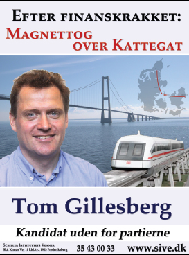 Sur l’affiche de campagne une chose choquait la population. Ce n’était pas la mention du maglev, mais celle de la crise financière, jusqu’ici absente de toutes les discussions. Et puis mercredi dernier dans le plus grand journal du pays Jyllands-posten , le premier article d’une série de trois annonçait que la crise immobilière avait belle et bien passé les frontières du pays scandinave avec quelques pages plus loin une description de la campagne de Tom Gillesberg, membre de l’Institut Schiller intitulée « krach financier et maglev »...
