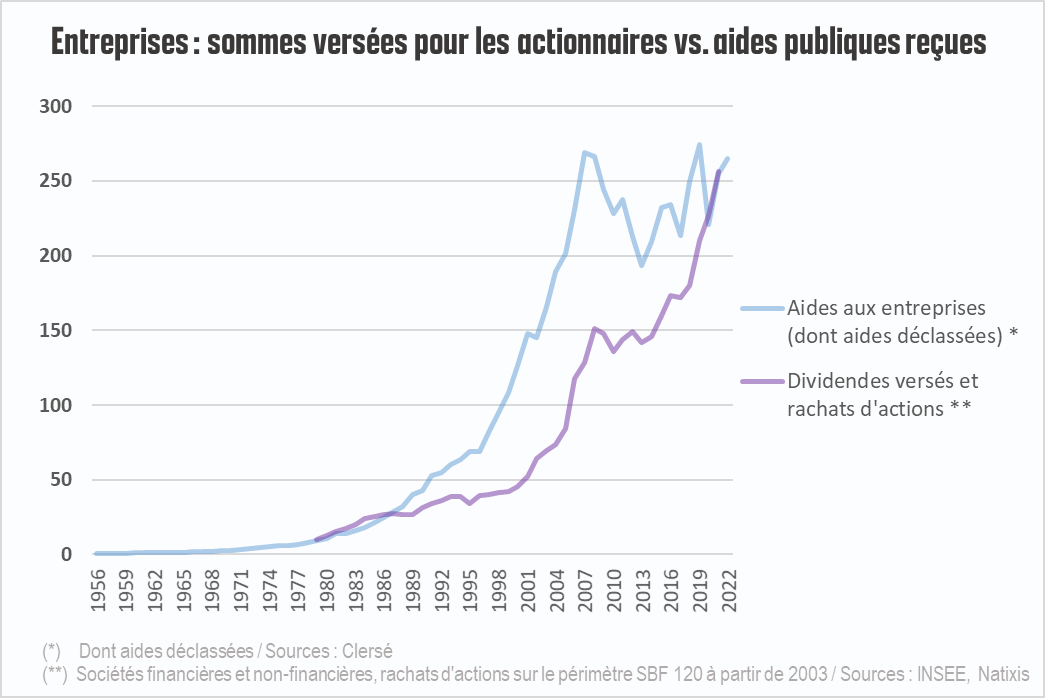 De l’autre, il ne touche pas aux aides publiques mirobolantes sans contrepartie ni évaluation, le plus souvent accordées aux grandes entreprises en périodes de crise (krach de 2007 ou Covid), alors que ces dernières licencient et délocalisent à tout va tout en payant de juteux dividendes à leurs actionnaires.
