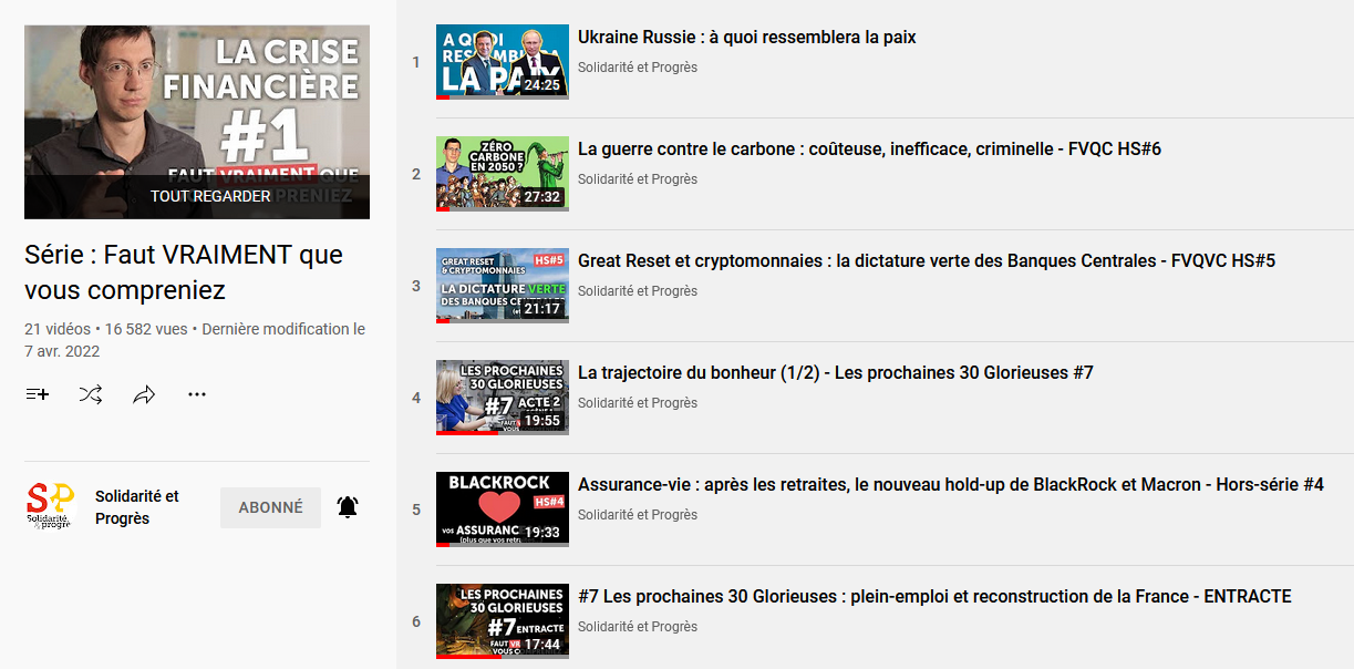 Cliquez sur l’image ou sur ce lien pour accéder à la playlist de mes vidéos pédagogiques sur la monnaie, la dette, la finance et l’économie physique. N’ayez pas peur, tout le monde peut comprendre des sujets complexes ! (surtout quand ça détermine notre avenir)