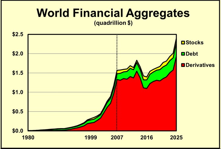 Aujourd’hui, cette bulle atteint 2,4 millions de milliards de dollars. Et c’est cela qui, selon moi, est fondamentalement à l’origine des guerres perpétuelles. C’est ce qui est à l’origine du génocide perpétré à Gaza. Et cela conduira, si nous ne l’arrêtons pas, à des politiques identiques à la Solution finale mise en œuvre à Auschwitz.