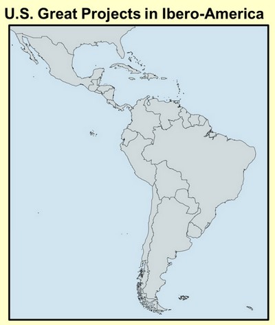 La carte ci-dessus illustre la perception de l’Amérique du Sud et des Caraïbes, en présentant quelques-uns des grands projets que la Chine a déjà réalisés ou proposé de réaliser au cours des deux dernières décennies. Il en existe d’autres, mais ceux-ci ne sont que quelques exemples. C’est donc l’option proposée aux observateurs du monde depuis les pays en développement, les pays du Sud. Comparons maintenant les réalisations chinoises avec les projets et réalisations des États-Unis en Amérique du Sud au cours des deux dernières décennies. Cette comparaison est visible sur la figure suivante :