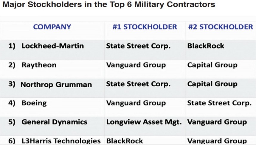 — Lockheed Martin : son principal actionnaire est State Street, suivi de BlackRock, que vous connaissez tous.