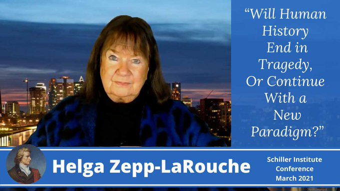 Intervention de Helga Zepp-LaRouche, fondatrice et présidente internationale de l’Institut Schiller, lors de la visioconférence de l’Institut Schiller des 20 et 21 mars 2020 sur le thème : « Deux mois après l’investiture de Biden, le monde à la croisée du chemin. » Pour voir le programme complet et accéder aux liens vers les différents discours, cliquez ICI.