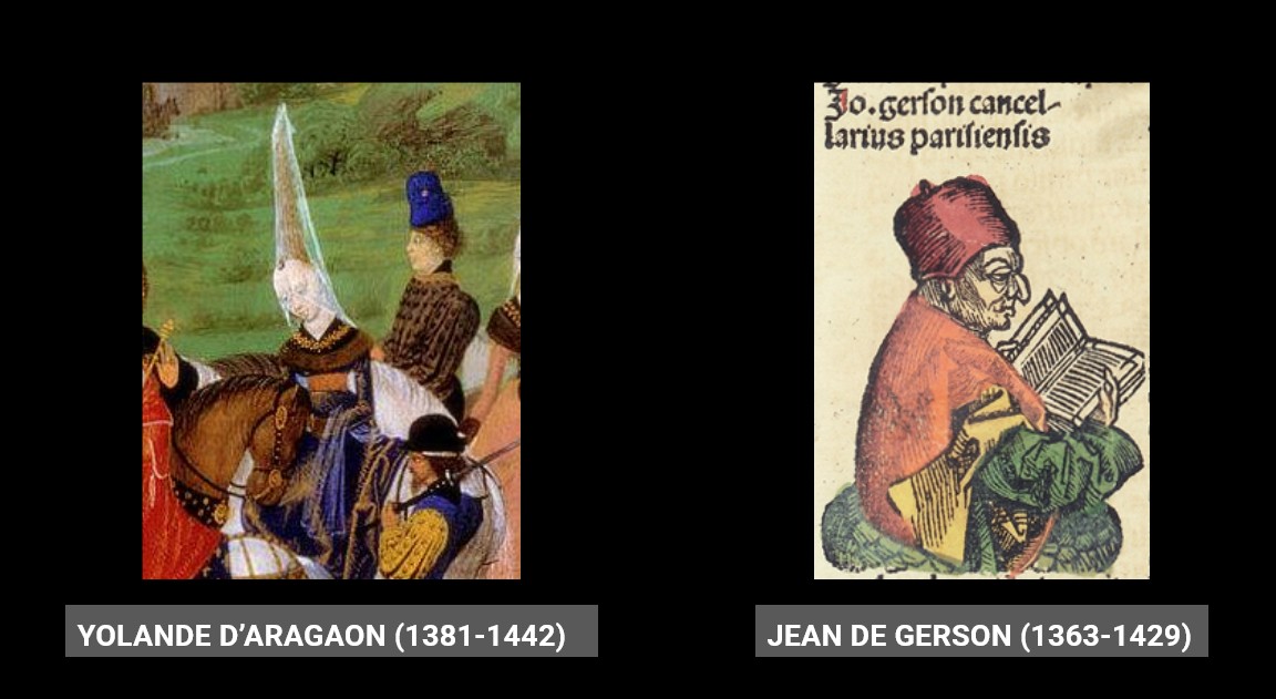 Louis XI est né en 1423. Il est le fils de Charles VII, dont la couronne est revendiquée par l’Angleterre, soutenue par les Bourguignons. Jeanne d’Arc, née en 1412, conduira Charles VII à Reims pour son couronnement en 1429 et sera brûlée en 1431 par les Anglais. Il est probable que Louis XI l’ait rencontrée à ses 7 ans à la cour de Bourges, au retour de Jeanne en 1929.