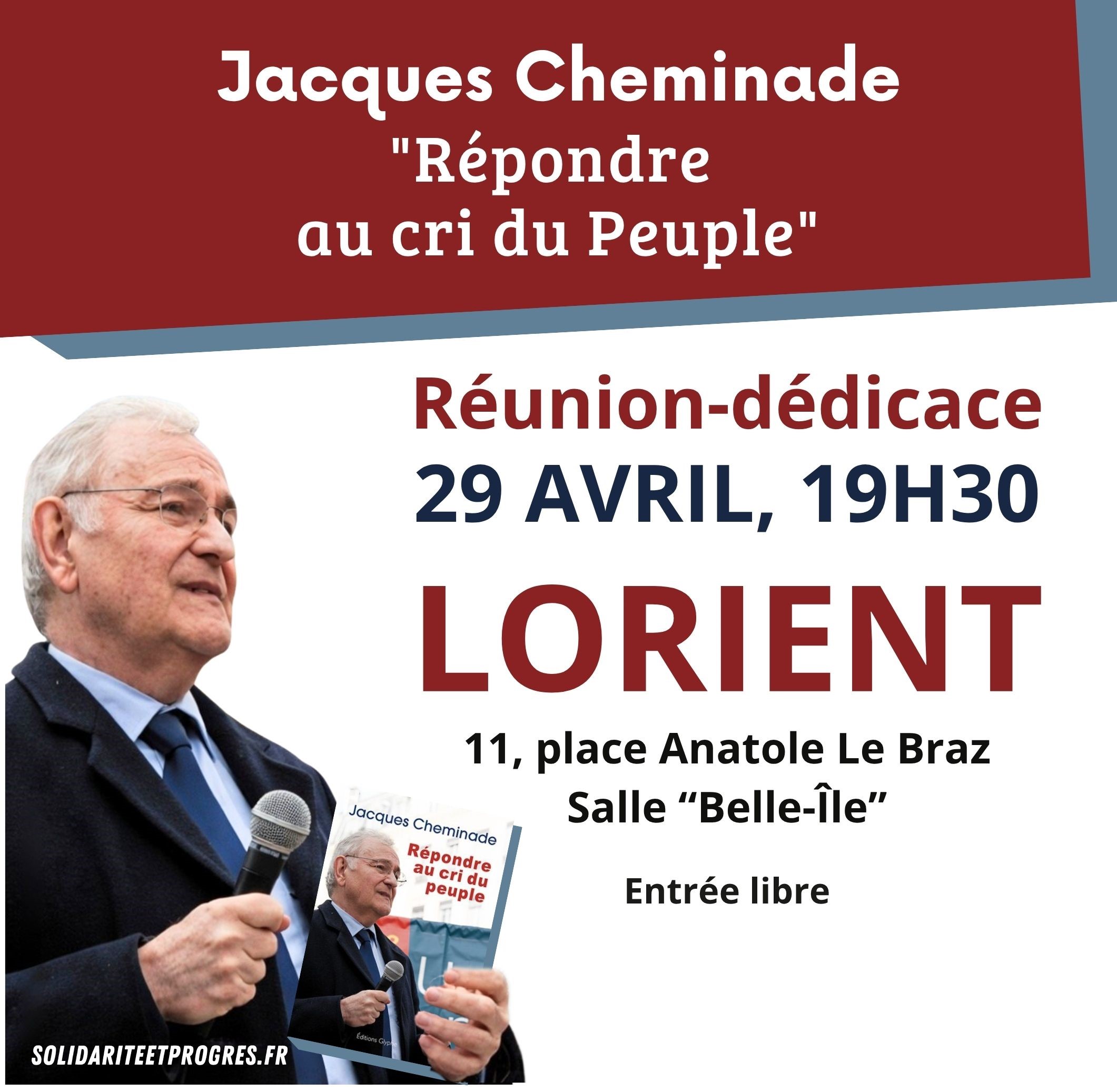 Réunion-dédicace avec Jacques Cheminade à Lorient le mercredi 29 avril
