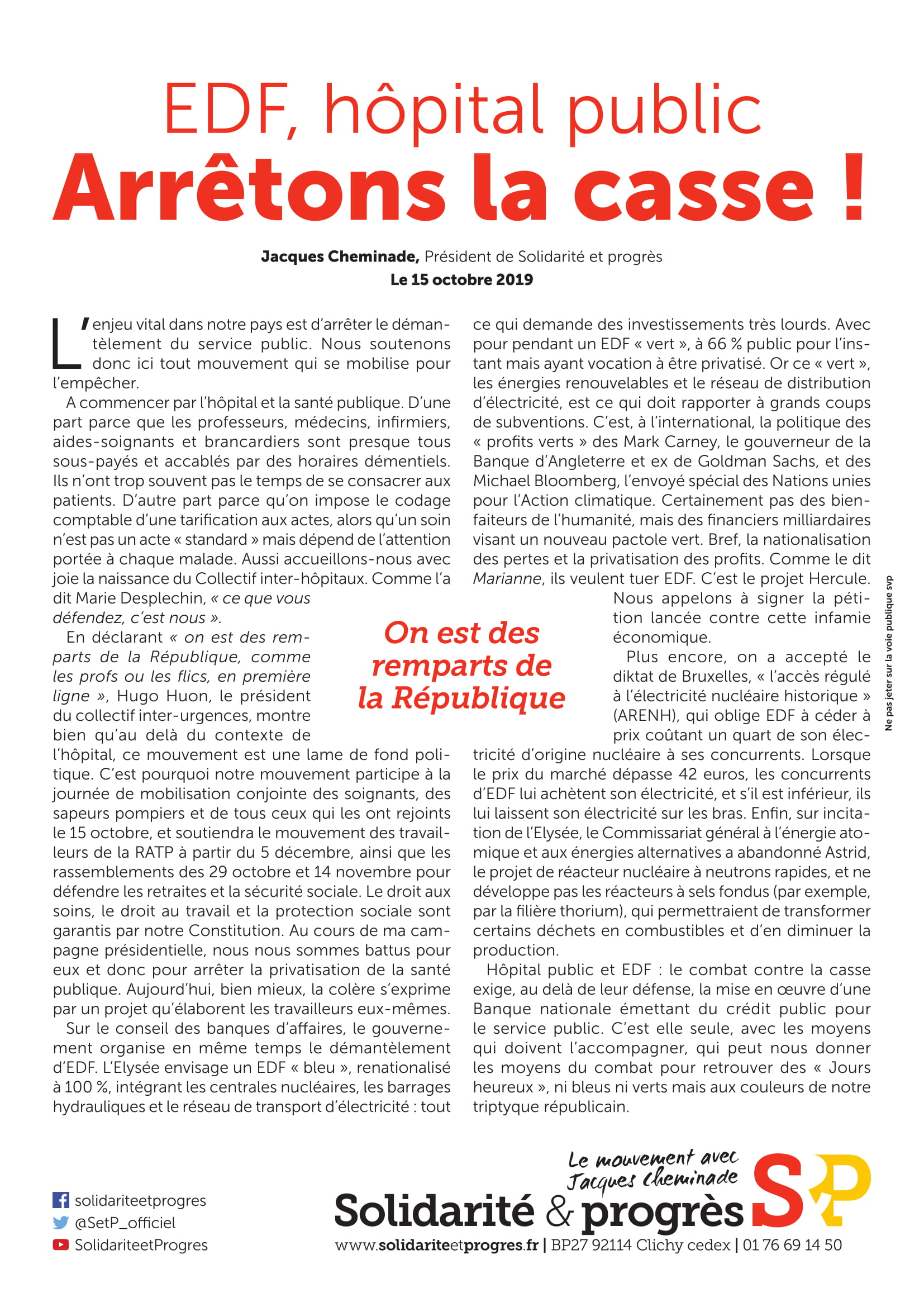 Editorial de Jacques Cheminade, paru dans le mensuel Nouvelle Solidarité le 18 octobre 2019. L’enjeu vital dans notre pays est d’arrêter le démantèlement du service public. Nous soutenons donc ici tout mouvement qui se mobilise pour l’empêcher.