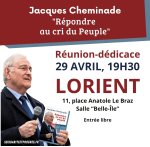 7 avrilJacques Cheminade sera présent à Lorient le 29 avril pour une réunion-dédicace et la promotion de son dernier livre