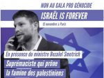 Le 13 novembre, le ministre israélien des Finances du gouvernement Netanyahou, Bezalel Smotrich, qui exerce également des responsabilités au ministère de la Défense, dirigeant du parti religieux Mafdal, suprémaciste, chargé des colonisations illégales en Cisjordanie, sera à Paris pour participer à une soirée de gala en tant qu’invité de l’association « Israël is forever ».