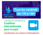 19 mars 2024Chaque vendredi, la Coalition internationale pour la paix organise un dialogue sur zoom rassemblant citoyens, associations, mouvements religieux ou humanitaires du monde entier, afin de faire connaître les solutions pour la paix.
