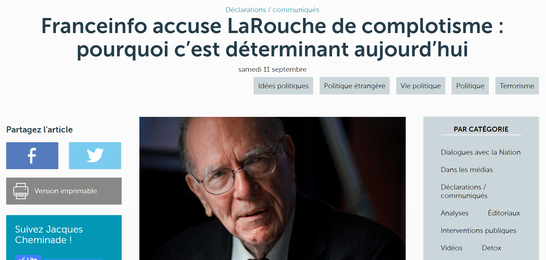 Lire la déclaration de Jacques Cheminade : « France info accuse Lyndon LaRouche de complotisme : pourquoi c’est déterminant aujourd’hui »