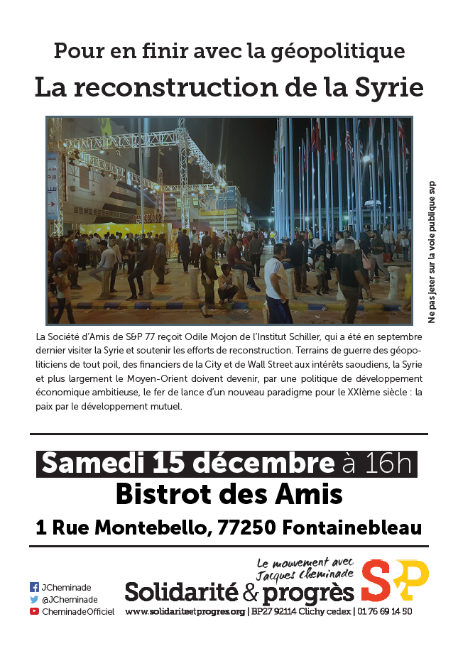 15 décembre, Fontainebleau - Pour en finir avec la géopolitique. La reconstruction de la Syrie
