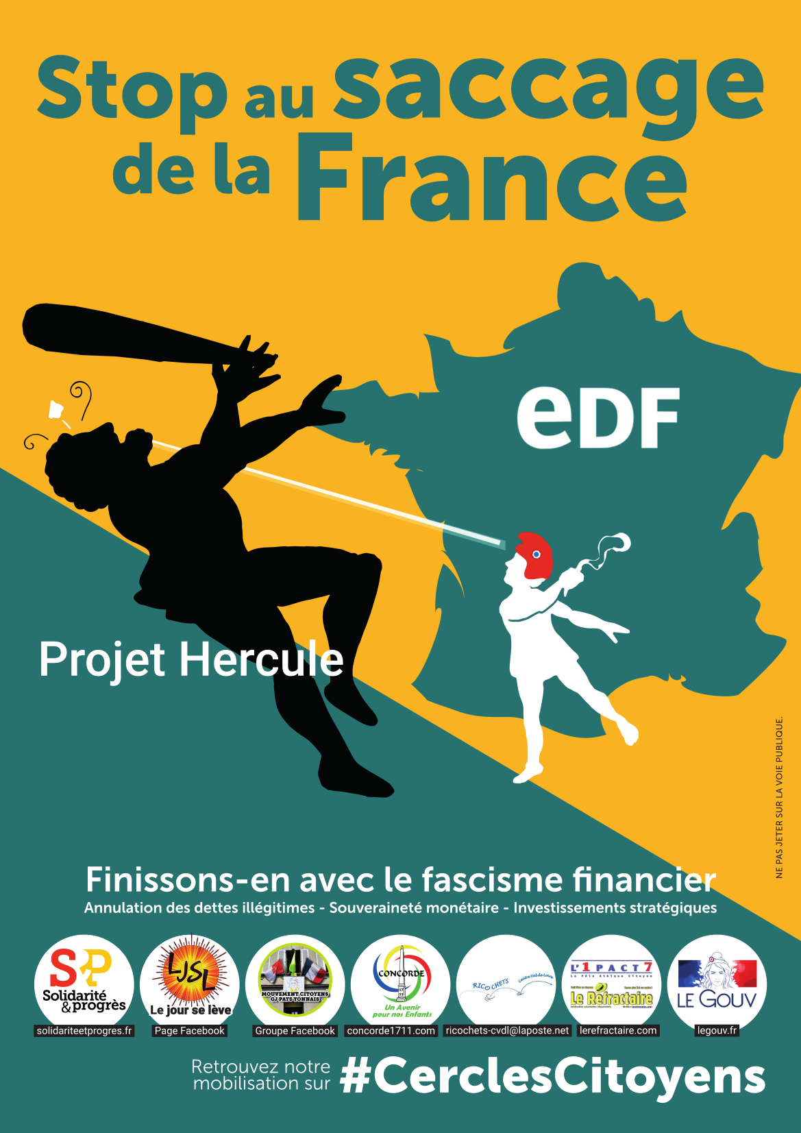 Samedi 27 mars, les #CerclesCitoyens avec S&P lancent une nouvelle mobilisation nationale et transpartisane. La cible : le projet Hercule et le fascisme financier qui saccage notre pays.
