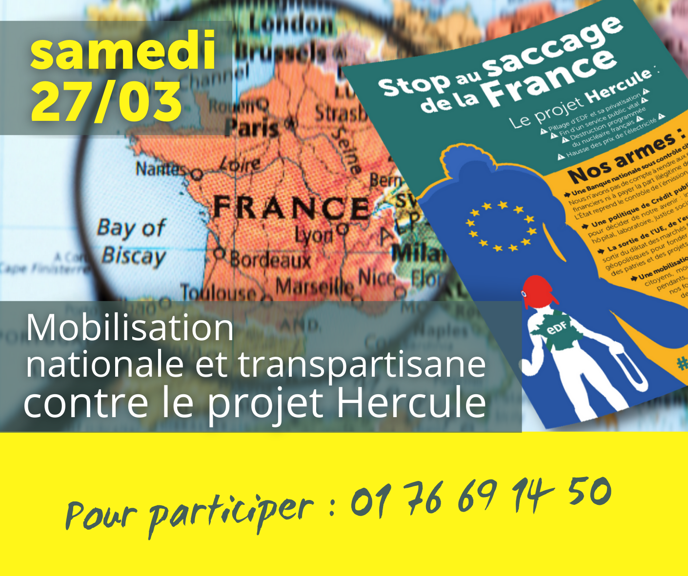 Rendez-vous est donc pris pour le samedi 27 mars ! Il s’agit cette fois, par un tract et des affiches communs, de dénoncer le projet Hercule qui prévoit le démantèlement d’EDF, exemple parmi tant d’autres de ce véritable fascisme financier qu’il n’est plus possible d’ignorer aujourd’hui.