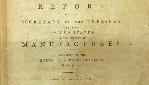 Pour comprendre l’importance de ce rapport, rappelons que Hamilton, l’un des fondateurs du « Système américain d’économie politique » qui permit aux Etats-Unis de devenir ensuite la première économie mondiale, rédigea plusieurs rapports présentés au Congrès :