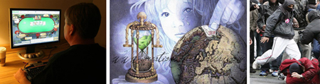 Deux choses. D’abord la société de consommation qui s’est installée depuis les années 70. L’homme n’est plus producteur, créateur. Il est devenu consommateur. Les populations ont été amenées à abandonner toute quête d’immortalité, à travers leur transformation de la société, pour devenir de passifs consommateurs d’images, de rêves, de plaisir, de high-tech, de vidéos, de gens – il n’y a qu’à voir les taux de divorces partout ! En France, plus de 2 millions de personnes s’adonnent maintenant aux paris en ligne et 600000 en seraient même devenues dépendantes, selon les associations qui luttent contre ce phénomène. Et la quête d’émotions, comme à l’époque des cirques romains, les maintient cloués des heures durant à leur téléviseur, leur ordinateur, leurs jeux vidéos et autres i-phones et ipads.