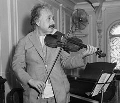 Jouer du violon, laisser courir son imagination et ... découvrir la théorie de la relativité, est-ce bien sérieux ? Pour Albert Einstein, grand admirateur de Mozart et de Bach, violoniste amateur adorant improviser sur son instrument ou au piano, la réponse est oui ! Il chérissait particulièrement Mozart et Bach dont les œuvres ont profondément imprégné, nourri son imagination ; question d’affinité entre cette musique et son propre processus de pensée.