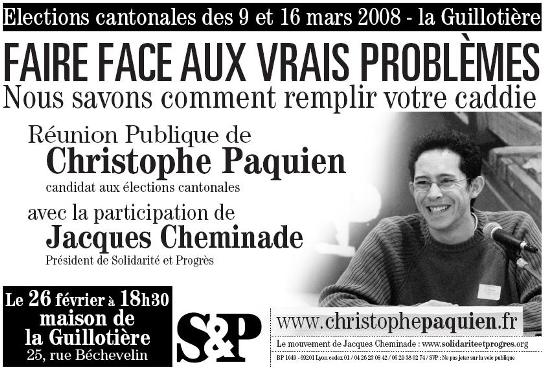 Compte-rendu et audio de la Réunion publique du 26 février dans le IXe canton de Lyon sur le blog du candidat--->www.christophepaquien.fr/ ?p=24
