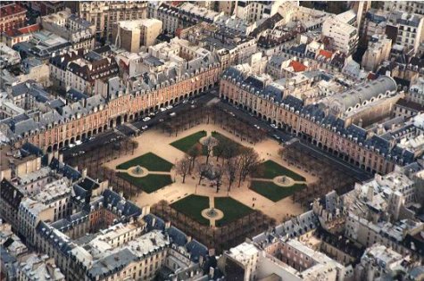 Il imagine également la magnifique Place royale achevée en 1605, devenue depuis la Révolution, la Place des Vosges (ci-contre).