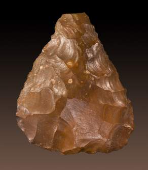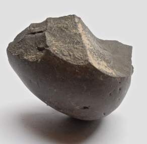 Cependant, au-delà de la simple utilité, les premiers bifaces (Fig. 1) révèlent la compréhension par nos ancêtres de la notion d’espace géométrique. Car, pour être tranchant, un chopper, simple galet avec une arête tranchante (Fig. 2) n’a pas besoin d’être symétrique.