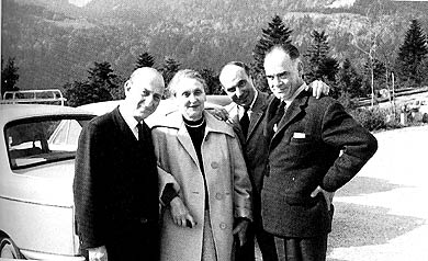 Ce fait fut reconnu par Michael Josselson, agent de la CIA et secrétaire opérationnel du CLC. (ci-dessous, de gauche à droite : à Genève en 1965, Raymond et Simon Aron, Michael Josselson et Denis de Rougemont).