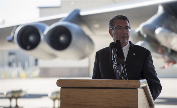 Depuis, ce parti de la guerre pousse son aventurisme jusqu’au bout. Le secrétaire à la Défense, Ashton Carter, vient d’effectuer une tournée des bases militaires de l’ouest des États-Unis pour promouvoir la modernisation de la dissuasion nucléaire américaine, un programme estimé à 1000 milliards de dollars. Il en a profité pour envoyer des messages mortifères aux Russes, comme aux meilleures heures de la guerre froide. Le 26 septembre, c’est devant un bombardier B-52 qu’il a prononcé un discours sur la base aérienne de Minot, dans le Dakota du Nord, et le 29 septembre, c’est depuis le porte-avion USS Carl Vinson, à San Diego, qu’il lança ses diatribes.
