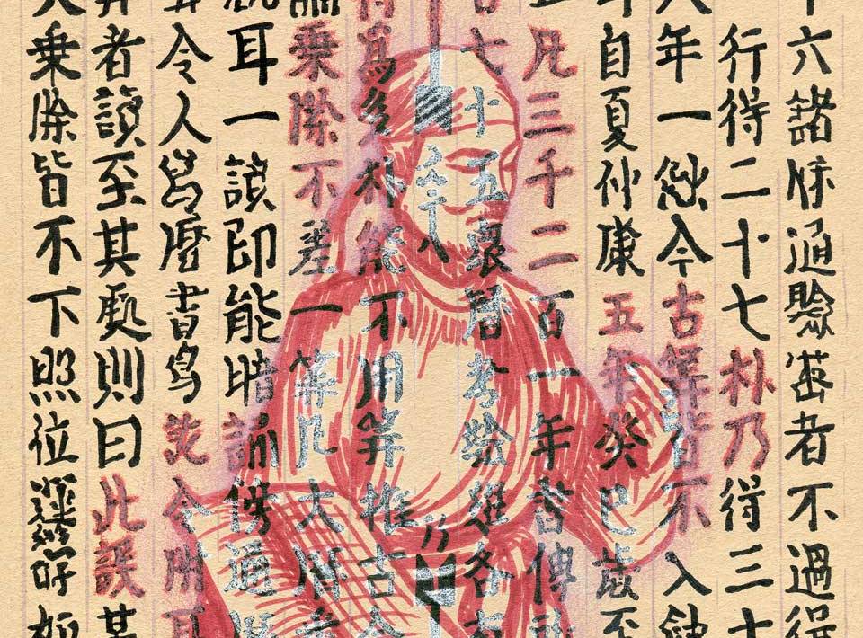 Il semble que ce soit au Ve siècle, à l’époque des Six dynasties, qu’on ait pour la première fois enduit les sceaux d’une encre rouge au cinabre, pour les imprimer sur papier. Un siècle plus tard, se répandent de grands sceaux de bois que les taoïstes, férus de magie, utilisent en qualité de charmes.