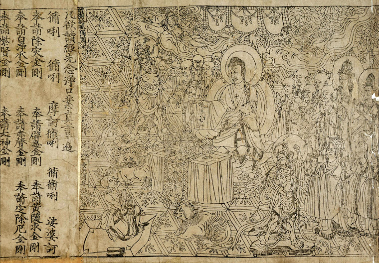 Le plus vieux livre imprimé que nous possédons est le Sûtra du Diamant daté de 868, un écrit bouddhique chinois. C’est en effet le bouddhisme qui promut, pour des raisons de prosélytisme, l’imprimerie.