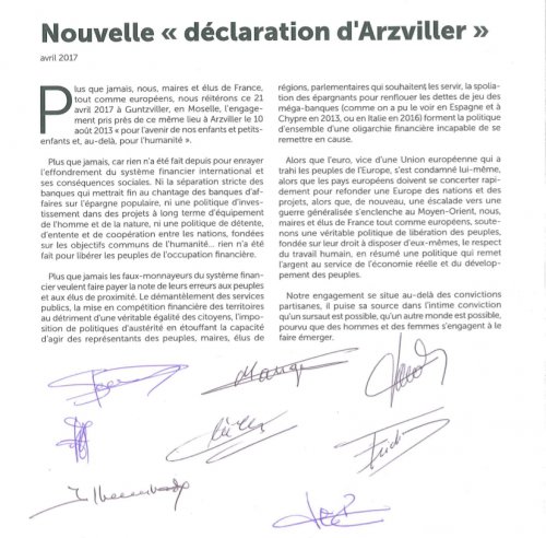 Cette table ronde s’inscrit dans la continuité de la rencontre d’Arzviller, où des élus de France et d’Allemagne s’étaient déjà rassemblés en août 2013 et avaient signé puis fait circuler un premier texte commun. Cette même année et grâce à cette même dynamique de dialogue entre les élus locaux et le mouvement de Jacques Cheminade, 41 communes, 2 départements, et 1 région avaient voté des vœux pour durcir la fausse réforme bancaire du gouvernement Hollande.