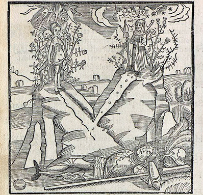 Ce thème est très répandu à l’époque. On le retrouve dans la Nef des Fous de Sébastien Brant, sous la forme d’Hercule à la croisée des chemins. Dans cette illustration, à gauche, en haut d’une colline, une femme nue représente le vice et l’oisiveté. Derrière elle, la mort nous sourit.