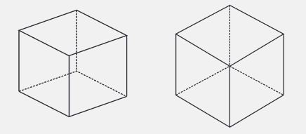 Quand je tourne le cube sur un angle, j’obtiens d’une façon très démonstrative comme ombre du cube un hexagone !