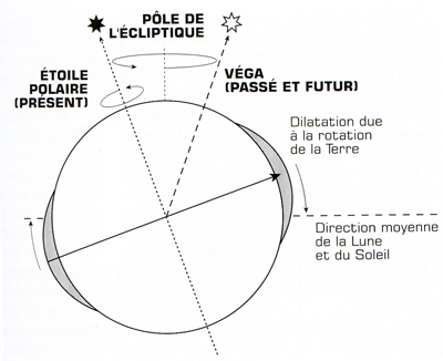 Le premier de ces cycles, la « précession des équinoxes » (le lent changement de direction de l’axe de rotation de la Terre), était connu dès le début des temps des astronomes védiques en Inde. C’est un cycle d’environ 26000 ans, produit par l’oscillation de l’axe terrestre (un peu comme une toupie).