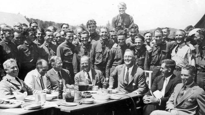 Lancé par le président Franklin Roosevelt deux semaines après son investiture, le Civilian Conservation Corps fut adopté par le Congrès dix jours plus tard, le 31 mars 1933. Une semaine après, les premiers volontaires étaient recrutés et le 17 avril, le premier camp du CCC fut ouvert. En moins de trois mois, 250 000 jeunes de 18 à 25 ans, sans emploi, sans diplômes et sans qualification furent répartis dans plus de 1400 structures à travers tout le pays, encadrés par 50 000 adultes pour leur formation, ainsi que par des officiers de réserve de l’US Army pour l’encadrement logistique et éducatif.