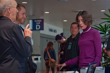 | Dans les couloirs de la convention, le LYM était le seul à ne pas distribuer T-shirts, pancartes et stickers, mais des idées. |