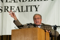 Le discours suivant devait être prononcé par Viktor Razbegin, vice-président du Conseil pour l’étude des forces productives du ministère russe du Développement économique et du Commerce et de l’Académie des sciences. Cependant, en raison d’un changement de gouvernement russe à la veille de la conférence, M. Razbegin n’a pu y assister personnellement et son discours fut lu par Rachel Douglas, de l’EIR. Il portait sur « la liaison intercontinentale multimodale entre l’Eurasie et l’Amérique du Nord : une liaison clé du système de transport mondial », thème que M. Razbegin connaît bien puisqu’il est le promoteur officiel de ce projet et a organisé la conférence historique sur le sujet qui s’est tenue en avril dernier à Moscou, avec la participation de Lyndon LaRouche. Pour le public réuni à Kiedrich, Viktor Razbegin a retracé la genèse du projet depuis le XIXe siècle jusqu’à la création, en 1991, du Groupe interhémisphérique pour le tunnel sous le détroit de Béring et la voie ferrée, suivie en 1996, de la fondation de la Commission intergouvernementale américano-russe, qui a commissionné une série d’études. M. Razbegin a esquissé la faisabilité du projet et ses formidables avantages. Le coût de l’ensemble du projet, avec les lignes ferroviaires, oléoducs et gazoducs, les lignes électriques et de fibres optiques, ne s’élèverait qu’à environ 55 à 67 milliards de dollars.