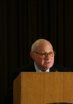 Le dernier orateur de cette troisième session fut Pierre Chiquet, fondateur des centres spatiaux de Brétigny et Toulouse, et de la plateforme de lancement de Kourou. Son thème : « Grands projets et haute technologie : redécouvrir le volontarisme de la période de reconstruction d’après-guerre ». Pionnier du programme spatial français, M. Chiquet en retraça le développement, qui devait tant à la vision de de Gaulle et de Kennedy. Sa présentation a montré la nécessité de faire revivre cette vision chez les jeunes, dont l’enthousiasme ne connaît pas de bornes. Nous devons éliminer le pessimisme, dit-il, et revenir à une société optimiste, comme à l’époque.