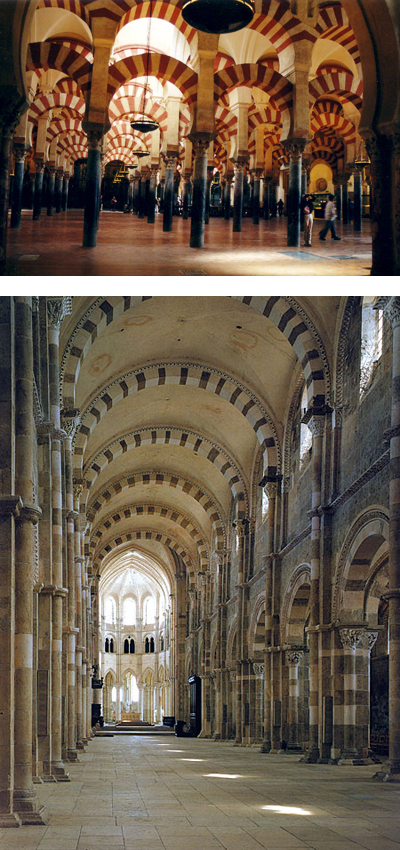 L’art roman est aussi un exemple de l’influence arabe. Dès l’époque, le pays « France » est beaucoup plus cosmopolite qu’on ne le pense. Ne trouve-t-on pas des statues de personnages chinois dans les églises romanes du Brionnais ? Concernant l’inspiration mozarabe, une comparaison entre la Grande Mosquée de Cordoue, dans l’Espagne andalouse, et la Basilique de Vézelay au cœur de la Bourgogne est particulièrement frappante.