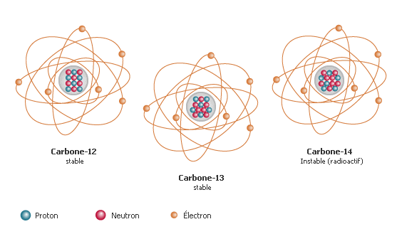 Les six protons définissent ces trois entités comme étant des isotopes de carbone, et c’est leur nombre de neutrons qui les différencie.