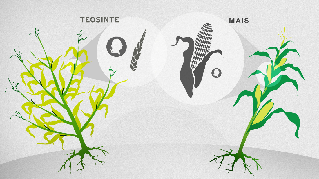 Le maïs que nous connaissons aujourd’hui n’a rien à voir avec ce qu’il fut. Le maïs engendré par la biosphère est cette petite tige ligneuse appelée téosinte qui ressemble à de la paille. Sur chacune de ces tiges on trouve entre 10 et 12 graines protégées par une coque dure. Elles poussaient tout autour de petits arbustes. Vous aviez ces plantes alentour, essentiellement des tiges et des buissons avec des fruits à coque : il fallait alors beaucoup d’efforts et de travail pour obtenir peu de nutriments.