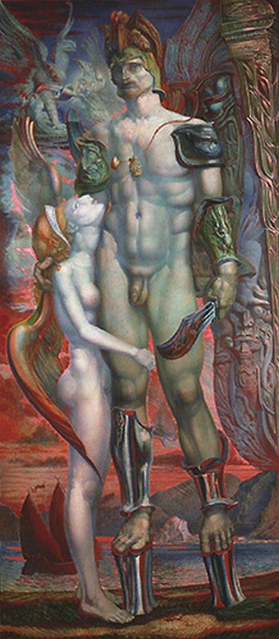 Ce motif symboliste du couple eros (sexe) et thanatos (mort) provient directement des doctrines ésotériques et anti-chrétiennes n’excluant pas les sacrifices humains. Si Mme Blavatsky et ses théosophes prônaient la mise à mort du judéo-christianisme en faveur des vertus « femelles » de religions anti-prométhéennes, la montée du fascisme nécessitait la valorisation de symboles hautement plus virils et plus guerriers.