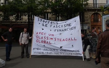 La mobilisation populaire contre la réforme Woerth-Sarkozy se poursuit, mais nous ne pouvons pas laisser s’exprimer la colère sans lui donner une direction positive. A Brest, Paris, Lyon, Rouen, St Etienne, Rennes, Toulouse, Nancy et de nombreuses autres villes, nos militants ont déployé aux abords des cortèges de grandes banderoles : « La liquidation judiciaire des spéculateurs ne se fera pas avec Sarkozy. DEMISSION ! », « Stoppons le fascisme financier avec un Glass-Steagall global » et ont distribué plus de 30 000 tracts. Par moment, les manifestants se sont véritablement agglutinés autour de nous en exigeant de savoir ce qu’est Glass-Steagall et comment mettre les spéculateurs en faillite. Car comment défaire l’austérité sans combattre l’effondrement financier qui la commande ? L’opposition et les syndicats feraient bien de se poser la question plutôt que d’attendre 2012 pour un changement ; les Français en tout cas n’attendent que ça.