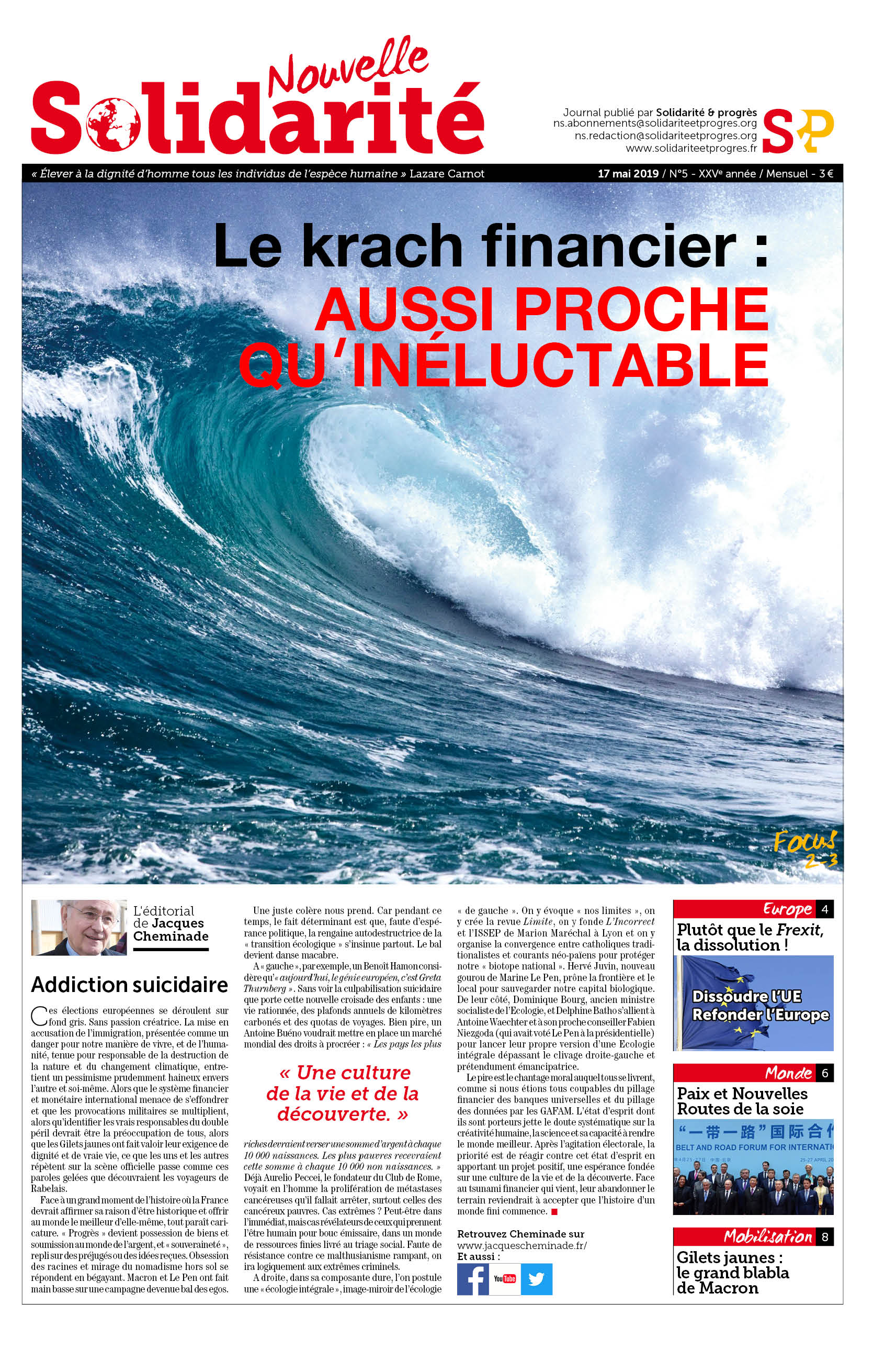 Jacques Cheminade a réagi fortement aux mesures annoncées le 25 avril par Emmanuel Macron, en réponse au mouvement des Gilets jaunes : « Incapacité à se remettre en cause au niveau des principes ; rien sur la crise financière qui vient, rien sur une vraie politique industrielle. On laisse aux financiers le robinet de l’argent. » Sa prestation ? « Une incessante mention de l’humain par un homme dont la politique ruisselle vers le monde de l’argent. »