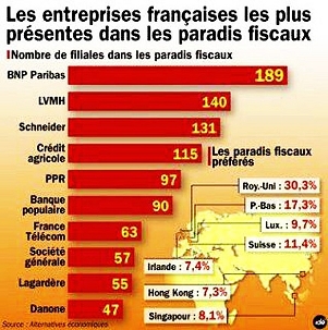Les conséquences qui en découlent, en termes d’instabilité sociale et politique, un pays comme la France est bien placé pour le savoir. Ce « pied de biche » fiscal permet de faire sauter les verrous réglementaires et de rendre les administrations plus à l’écoute et plus flexibles. Les gouvernements sont obligés d’assouplir leur législation fiscale pour tenter d’endiguer la fuite de capitaux, en adoptant des mesures caractérisant habituellement les paradis fiscaux et même la France, caricature de tout ce qu’il ne faut pas faire selon la doxa ultra libérale, se conduit comme un paradis fiscal quand on en vient aux entreprises du CAC40.