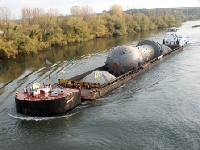 Barge poussée transportant un cœur de réacteur nucléaire. - 225 km de gabarit (III), dit « intermédiaire », pour des péniches de 90m sur 6m (650-1000 tonnes, ou 30 à 50 camions) ;
