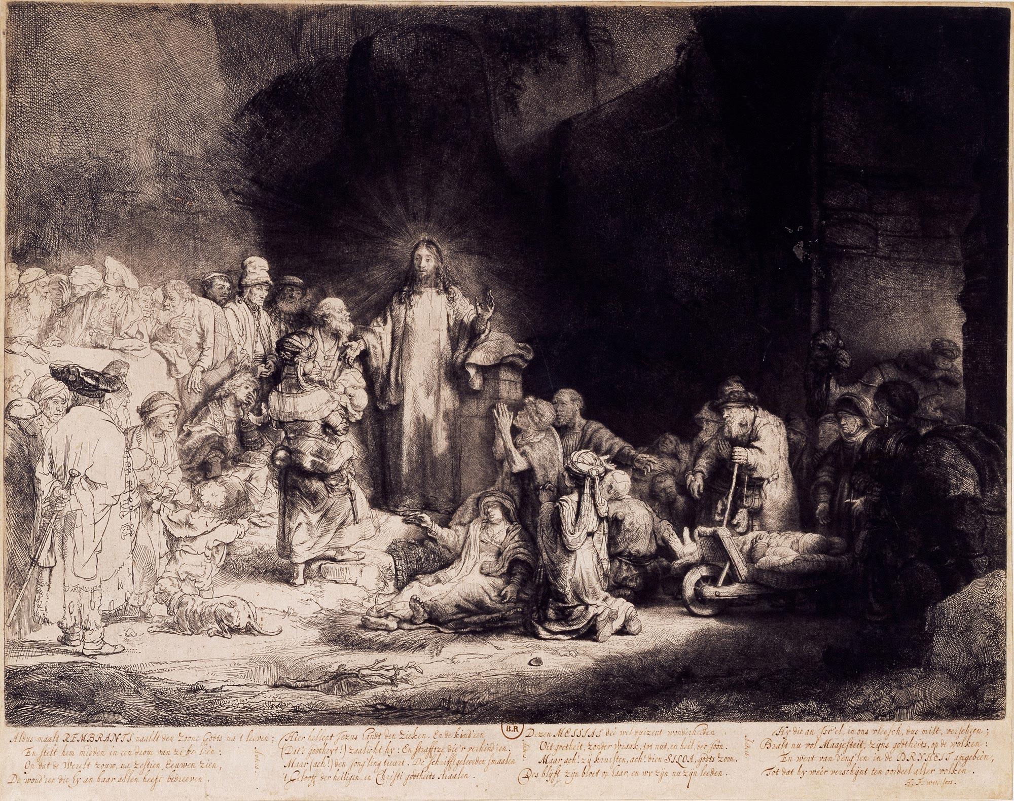 Cette philosophie se manifeste également dans l’eau-forte connue sous le nom de Pièce aux cents Florins (Le Christ prêchant aux infirmes) [FIG17].