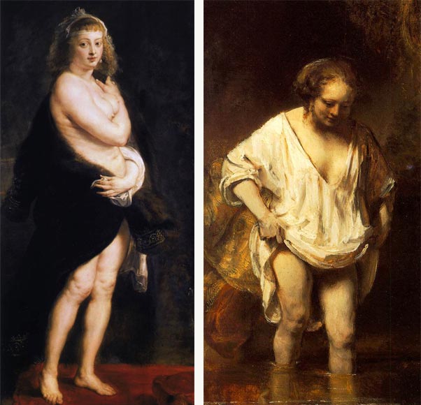Voici une comparaison de deux tableaux qui vous permettra d’identifier encore mieux cette différence fondamentale entre éros et Agapè : La petite pelisse de Rubens [FIG11] et Hendrickje se baignant dans une rivière de Rembrandt [FIG12].