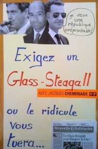Fidèles à leur excellence technique, presque tous nuancent leur soutien à l’idée de rétablir une loi de type Glass-Steagall. « Ça n’aurait pas empêché les subprimes, le Glass-Steagall n’est pas tout » ; « Mais vous savez, les banques françaises sont tout de même moins exposées aux risques... » ; « C’est aussi une affaire de régulation, il n’est pas aisé de différencier les produits dérivés légitimes de ceux qui sont spéculatifs. » Mais lorsqu’on expose l’idée de créer ainsi un cadre dans lequel on aurait pu décider de protéger le tissu de banques utiles à l’économie, tout en laissant les spéculateurs se suicider en 2008, c’est le cœur et la conscience citoyenne qui parlent, et non plus les techniciens. « Sur le Glass-Steagall, je n’y connais pas grand chose, mais il faut absolument qu’on aille fouiller dans les comptes des banques et trier ! » ; « Ce n’est pas pour rien que le Glass-Steagall fut instauré en 1933, et c’est tout à fait normal d’en reparler dans la situation présente. » ; « C’est clair qu’il fallait garantir les moyens de paiement, mais pas la spéculation » ; « En tout cas, quand l’État met de l’argent, il devrait prendre le contrôle de la banque pour le diriger là où il faut. »