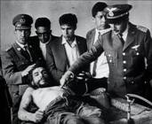 Et je vais vous montrer l’autre scène qui vise à le christianiser, je dirais : c’est d’après un tableau de Mantegna, la photo qui a été prise au moment où les militaires boliviens qui l’ont éliminé le montrent. Il faut dire aussi que Guevara avait développé la théorie du « Foco » - c’est-à-dire que l’on créé un foyer dans la jungle ou ailleurs, les gens suivent celui qui attaque la police injuste et l’armée injuste, et ensuite se créé le foyer révolutionnaire qui se développe. Ils avaient théorisé de cette façon, et c’est Régis Debré qui dans « la révolution dans la révolution » l’avait théorisé : la révolution. Cet aspect romantique était parfaitement stupide : si Guevara et Castro ont réussit de cette façon à Cuba, c’est avec la bienveillance des américains. C’est le secret le plus mal gardé, mais auquel on ne veut pas croire.