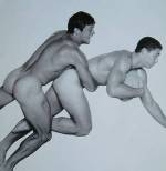 Et, l’image qui suit : que croyez-vous que c’est ? Une publicité pour la gay-pride ? Et bien, c’est le calendrier des joueurs de rugby du stade français, qui s’appelle «   ;les dieux du stade ». Je ne sais pas si cela rappelle quelque chose à quelqu’un... La cinéaste d’Hitler, Léni Riefenstahl, avait fait, pour les jeux olympiques de 1936, un film qui s’appelait « les dieux du stade  ; ». C’est le corps physique, objet de culte, la force animale promue. Et aujourd’hui, voilà que dans le midi - je l’ai vu alors que j’étais avec Fred Bayle là-bas - je l’ai vu dans plusieurs petits restaurants ; et j’ai demandé à une dame : « mais ça, qu’est-ce que c’est ? », et elle m’a dit « bin c’est les messieurs qui jouent au rugby, quoi ! ». Je lui ai dit « mais, madame, hem, c’est un peu bizarre », « Oh, les clients aiment ça ! » Donc, la question qui se pose, c’est : où vont-ils planter l’essai ? J’espère que ce n’est pas dans vos cerveaux.