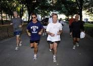 Maintenant, la suivante, avec la croix de Lorraine : c’est Sarkozy avant la présidentielle ; ce qui nous montre l’hypocrisie totale du personnage, qui est là, devant la croix de Lorraine, à Colombey-les-deux-églises, et qui se recueille devant ce monument - à vrai dire assez ridicule -, en se prétendant gaullien ou gaulliste. Alors qu’il porte ce maillot de la New York Police Department ! Et que son ministre « jogge » avec lui dans les rues !