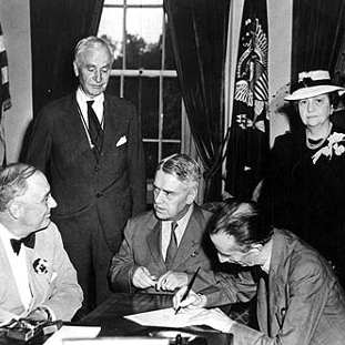 La France combattante était partie prenante de cette déclaration, par l’intermédiaire notable du socialiste Adrien Tixier, ministre des affaires sociales du Comité français de libération nationale (CFLN) présidé par de Gaulle, aux côtés des Etats-Unis de Franklin Roosevelt et Frances Perkins.